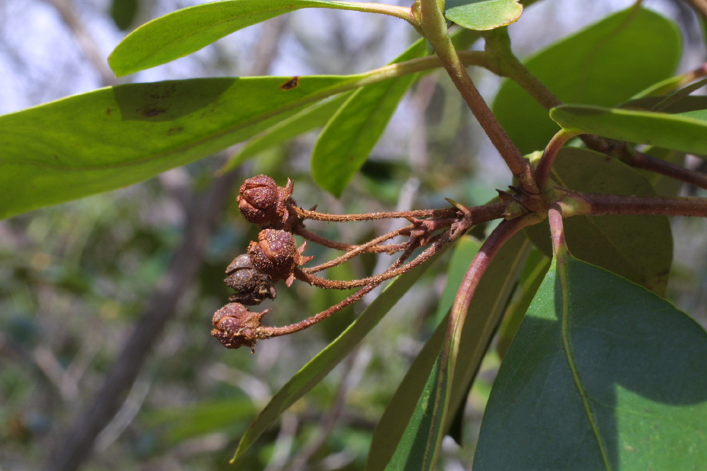 Fruit is a round and brown dehiscent capsule, about ¼ inch long which split into five valves when dried and occurs in clusters. It has small seeds when matured in fall.