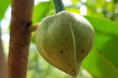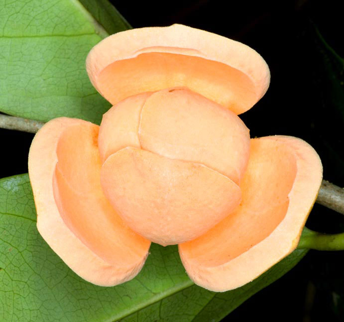 | Flower | Solitary or in pairs in older twigs, with stout peduncle. Sepals three, broad and pubescent; petals 6 in two whorls, inner three rounded; stamens numerous and crowded in rounded mass |