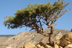Myrrh is a small thorny, deciduous tree or a large shrub that normally grows up to 5 m high and 1.5 m wide. The plant is found growing in thickets in desert scrub land, open Acacia, shallow soil, chiefly over limestone. The plant does best in thin soil, primarily in areas with limestone. The plant has a thick, light gray trunk with sharp spines protruding from its main branches. C. myrrha is a very variable species. The different forms seem to merge so imperceptibly that the recognition of infra specific taxa is often difficult.