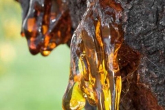 - Hard, translucent, yellowish gum-resin is obtained from wounds in the stem.