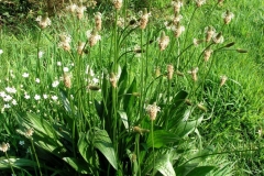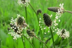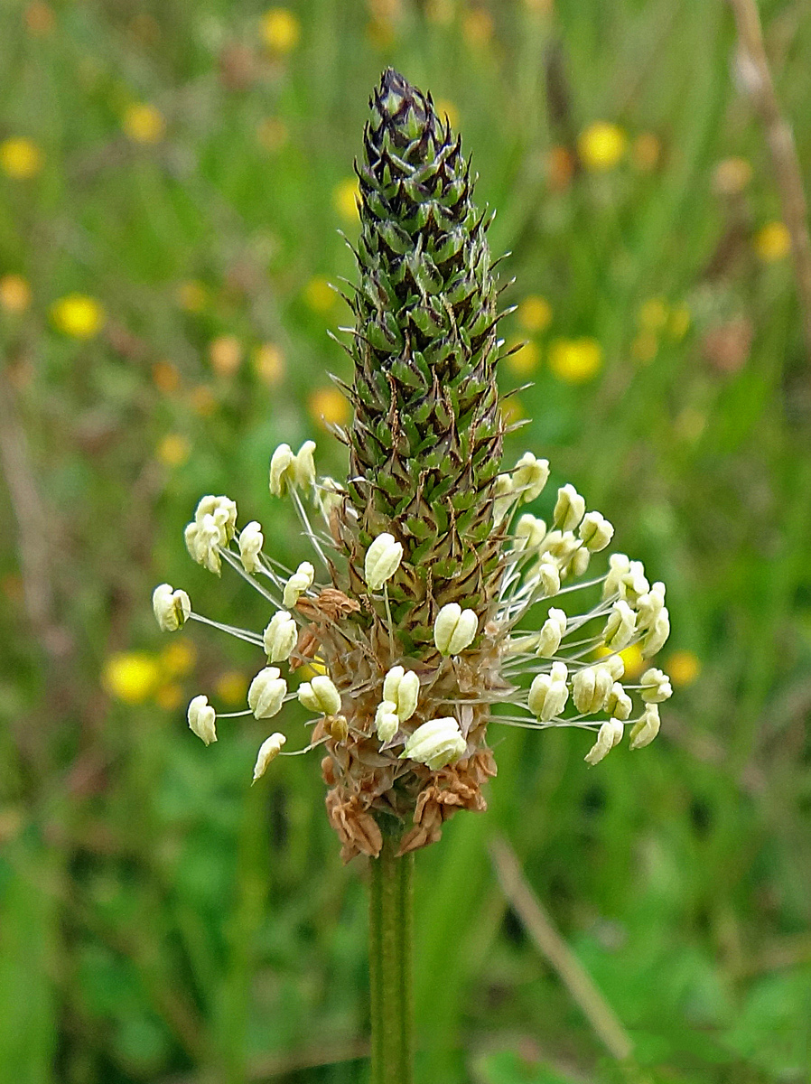 Plantago lanceolata also known as narrow leaved plantain, English plantain, Buckhorn plantain and ribwort plantain, is an erect cool-season perennial plant that is a member of the plantain family (Plantaginaceae). Generally, plantains are categorized under two groups, narrow leaf and broad leaf. The plant is native to northern Africa (i.e. Algeria, Egypt, Libya, Morocco and Tunisia), the Azores, the Canary Islands, Europe, western and central Asia and the Indian Sub-continent (i.e. northern India, Nepal and Pakistan). It is known by the common names black jack, black plantain, buckhorn, buckhorn plantain, buckhorn ribgrass, common plantain, English plantain, German psyllium, hen plant, jackstraw, lamb’s tongue, lamb’s tongues, lance leaf plantain, lance leaved plantain, long plantain, narrow leaf ribwort, narrow leaved plantain, narrow-leaved plantain, plantain, rat tail, rat-tail plantain, rib grass, rib-grass, ribwort, ribwort plantain, ripple grass, small plantain, snake plantain and wild sago. It is a common weed of cultivated land.
