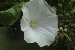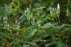 Turpeth is a large climber and perennial twinner with simple, triangular or rectangular stems. Stems are pubescent, twisting, winged and angled, usually tough and brown when become old. Roots are long, slender, much branched and fleshy. The thin root is circular having irregular wavy outline and measures 4 mm in diameter. Leaves are simple, pubescent on both sides but vary in shape. Leaves are oval about 2 to 5 inches long. The leaf base is cordate or truncate and about 5 -12.5 cm long and 1.3-7 cm wide. Flowers are white, campanulate with long sepals formed in cymes of few flowers which give way to globose capsules that are enclosed within overlapping brittle sepals. Capsules are round about 1-1.5 cm with four smooth seeds. Seeds are black, shiny and about 2 inches long.