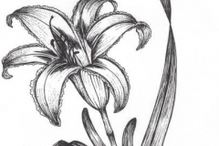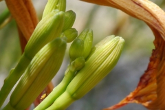 | Flower | Flowers are large, showy, orange, usually with some striping; occur in clusters of 5-9 at the tip of the stalk; flowers in a cluster open one at a time, each for one day only; summer. |