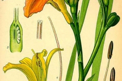 | Name in Other Languages | Arabic: zanabaq alnahar alkahramanii (زنبق النهار الكهرماني) Armenian: Voskeghenik gorshakarmir (Ոսկեղենիկ գորշակարմիր) Austria: Gelbrote Taglilie Azerbaijani: Kürən günotu Bulgarian: Zhŭltokafyav krin (жълтокафяв крин) Catalan: Assutzena rossa, Flor d’un dia, Hemerocal·lis, Lliri de sant antoni, Lliri de sant joan, Lliri d’un dia, Lliri groc, Lliris naronjats Chinese : Xuan Cao (萱草), Chang Ban Xuan Cao, Chang Guan Xuan Cao, Chang Lu Xuan Cao, Croatian: Crvenožuta graničica Czech : Denivka Forrestova, Denivka Plavá Danish : Brun Daglilje, Rødgul Daglije, Rødgul Daglilje Dutch : Bruine Daglelie English: Orange Day-lily, Fulvous day-lily, Tawny day-lily, Common orange daylily, dark day lily Estonian : Ruuge Päevaliilia Finnish : Punakeltainen Päivänlilja, Rusopäivänlilja French : Hémérocalle Fauve, Lis rouge, Lis d’un jour, hémérocalle jaune German : Bahnwärter-Taglilie, Braunrote Taglilie, Gelbrote Taglilie, Rotgelbe Taglilie Hungarian: Lángszínű sásliliom, Tuzliliom India : Swarnlili Italian : Giglio Di San Giuseppe, emerocallide fulva, giglio dorato Japanese : Akino-Wasuregusa, Hama-Kanzō, Oni-Kanzo, Yabu-Kanzo, Wasuregusa (ワスレグサ), Kanzo (カンゾ) Korean : Heutowanchuri, Khnwonchuri, Nomnamul, Wangwonchuli, Wonch’uri Latvian: Rusvoji viendiene Lithuanian: Rusvoji viendienė Norwegian : Brun Daglilje Persian: زنبق رشتی Polish : Liliowiec Rdzawy Russian : Krasodnev Buro-Želtyj, Krasodnev Ryžij, Lileynik oranzhevyy (Лилейник оранжевый), lileynik ryzhiy (лилейник рыжий) Serbian: Ljiljan (љиљан) Slovak: Laliovka červenkastá Slovašcina : Maslenica Rumenorjava, Rumenorjava Maslenica Slovencina : Ľaliovka Žltá Swedish : Branddaglilja, Brunröd Daglilja Thai : DtôN-Jam-Chàai Turkish: Turuncu güngüzeli, güngüzeli Ukrainian: Liliynyk ruduvatyy (лілійник рудуватий) Vietnamese : Hoa Hiên, Huyên Thảo, Hoàng Hoa, Kim Trâm Thái, Lộc Thông |