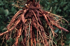 | Root | Plant develops rhizomes (horizontal underground stems) and fleshy, tuberous, spindle-shaped roots, with thinner, fibrous roots growing from both to form a dense system |