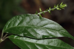 Petioles measure anything between 5 mm and 22 mm. The leaf blade is elliptic-lanceolate or elliptic and measures anything between 2 cm and 10 cm in length and about 1 cm to 5 cm in width. The leaf blades are spiky at the apex, while they are cuneate or wide cuneate at the base. A main margin runs through the length of the leaf blade, which is pubescent on the sides. The spica of the plant is axillary as well as apical.