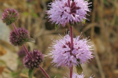 Pennyroyal is a low, prostrate, spreading, short-lived, perennial herb that grows about 0.4 meters to 0.6 meter tall. The plant is found growing in grassland, riparian habitats, freshwater wetlands, alluvial plains, valley bottoms, damp shady places, cultivated or waste places near dams or watercourses, flooded or seasonally wet areas, seeps, stream sides, vernal pools, swales, marshes, and ditches. The plant prefers rich, moist soil that is loamy rather than clayey. Stems are hairy when aerial and hairless when submerged, branched, 4-angled and are 10-40 cm high. Crushed Pennyroyal leaves exhibit a very strong fragrance similar to spearmint. European Pennyroyal attracts bees, butterflies and hoverflies. It is cultivated in parts of India for its essential oil.
