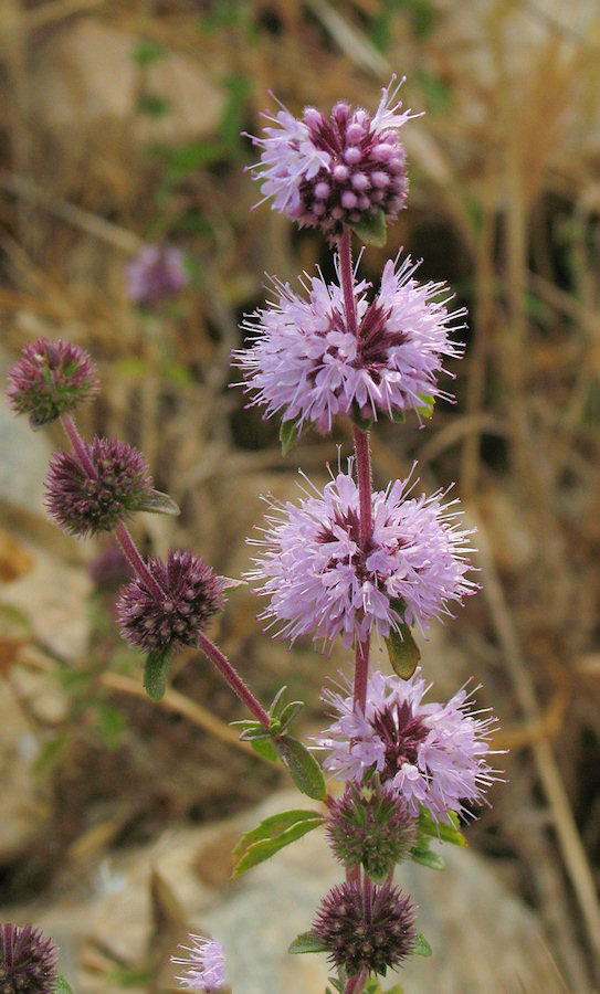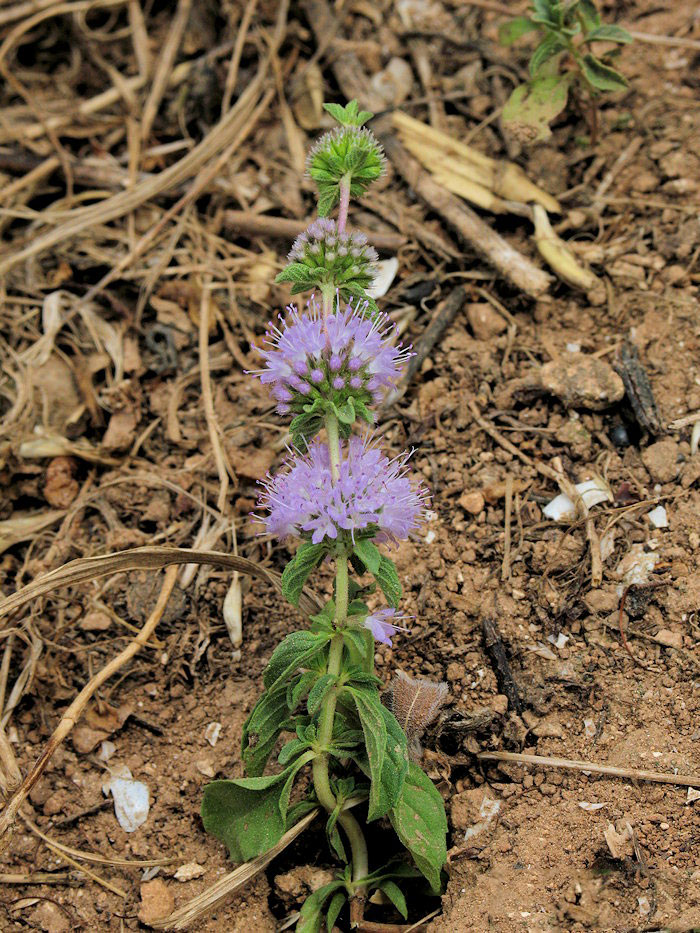 Pennyroyal is known botanically as Mentha pulegium. It belongs to the Lamiaceae or mint family and is commonly known by other names, including European pennyroyal, pennyrile, squaw mint, mosquito plant, and pudding grass. The plant is native to Europe, parts of Asia as well as to the Middle East. It was introduced to places in Africa along with Australia and New Zealand. Both Hedeoma pulegioldes (American pennyroyal) and Mentha puleguim (European pennyroyal) are referred to as pennyroyal. They are both creeping plants with small lilac flowers and grayish-green leaves. Although considered unusual in much of California, pennyroyal occurs in the Sierra foothills, Central Valley, and most coastal counties from the Mexican border to Oregon. It is common as a necessitate wetland indicator species in seasonally flooded soils of valley bottomlands, usually below 1,640 feet (500 m) elevation.
