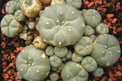 The crown of the peyote cactus crown has disc-shaped buttons. These peyote buttons consists of psychedelic alkaloids primarily mescaline, which is an alkaloid drug that has hallucinogenic effects on humans. People slice these buttons off of the cactus and dry them so they can be chewed or used to make a psychoactive tea. Peyote can also be smoked by rolling it in tobacco or a marijuana leaf.