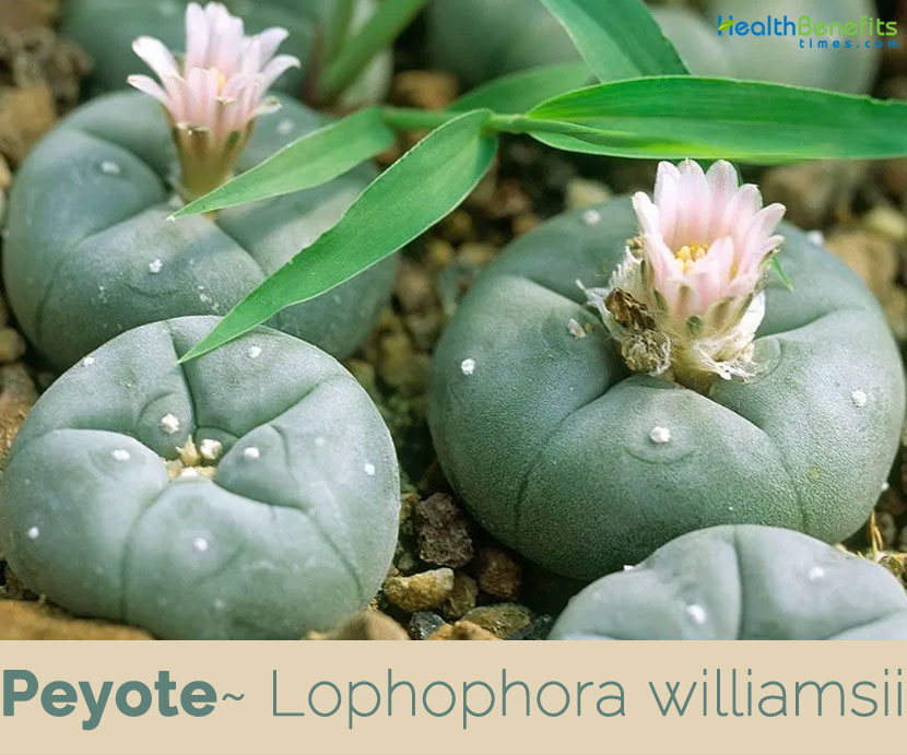 The crown of the peyote cactus crown has disc-shaped buttons. These peyote buttons consists of psychedelic alkaloids primarily mescaline, which is an alkaloid drug that has hallucinogenic effects on humans. People slice these buttons off of the cactus and dry them so they can be chewed or used to make a psychoactive tea. Peyote can also be smoked by rolling it in tobacco or a marijuana leaf.