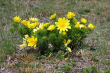 Adonis vernalis, known variously as pheasant’s eye, spring pheasant’s eye, yellow pheasant’s eye and false hellebore, Adonis, Sweet Vernal,Oxeye, Red Morocco and Rose-a-Rubie, is a perennial flowering plant in the buttercup family Ranunculaceae. The herb is native to dry meadows and steppes in Southern Europe and to Siberia and Labrador. Isolated populations are found from Spain in the west across Central Europe with fine examples in Valais, Switzerland, and southern Europe, reaching southern Sweden in the north, with its main area of distribution being the Pannonian Basin and the West Siberian Plain.