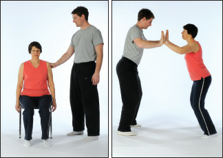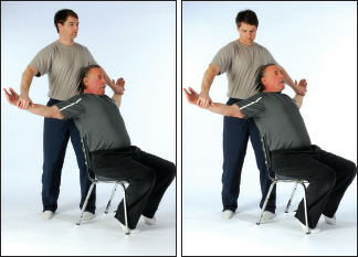 Your partner will start in a seated position. Instruct him or her to breathe during the entire exercise. Proceed to gently push at the shoulders, middle back, and front of the body. Once your partner feels comfortable with the seated position, try the standing position.