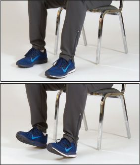 Begin in a sitting position towards the end of a chair. Tap your toes up and down together as quickly as possible, keeping your heels on the floor.