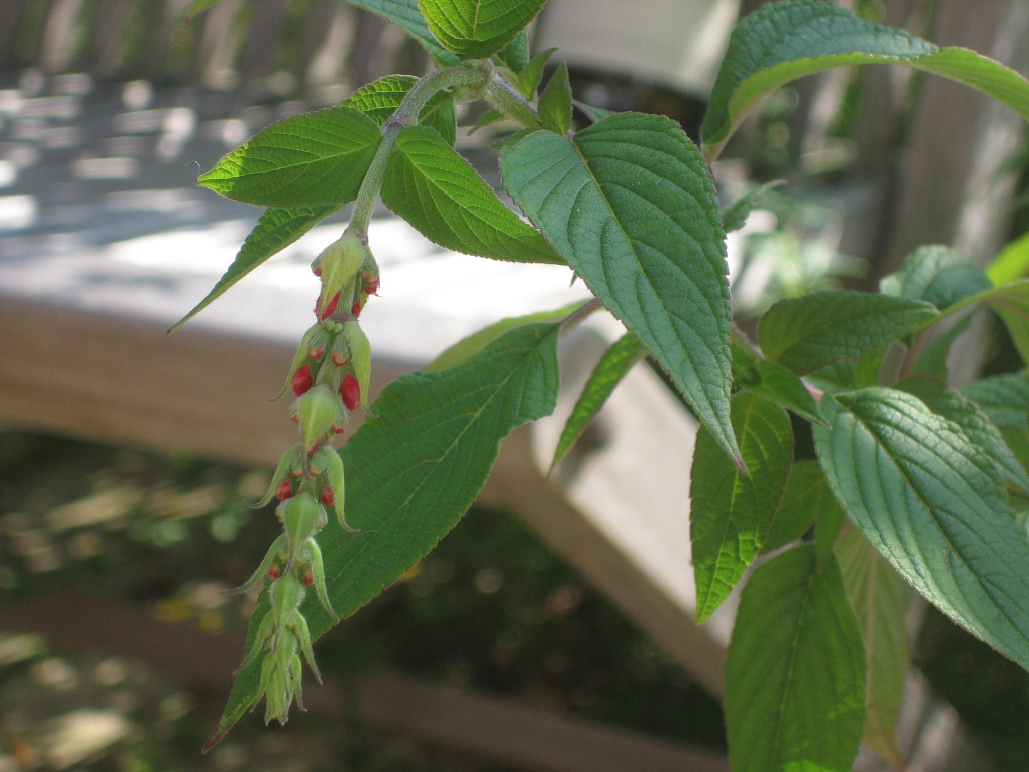Pineapple sage is native to Mexico and Guatemala. It reside Madrean and Mesoamerican pine oak forest between 6,000 and 9,000 ft. (1,800 and 2,700 m). Other common names are: Pineapple Sage, Honey Melon Sage, Pineapple Scented Sage and Tangerine Sage. The fragrant flower attracts butterflies and hummingbirds. Salvia elegans belongs to one of the 700 species in the genus in the mint family Lamiaceae.