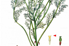 | Leaf | Stem leaves are alternate; stalk less, hairless, fern-like, 2-3 cm long and 0.6-1 cm wide. Leaf blades are inverted-lance shaped or oblong. They are deeply cut into lobes that are spaced out along the midrib but not cut to the midrib |