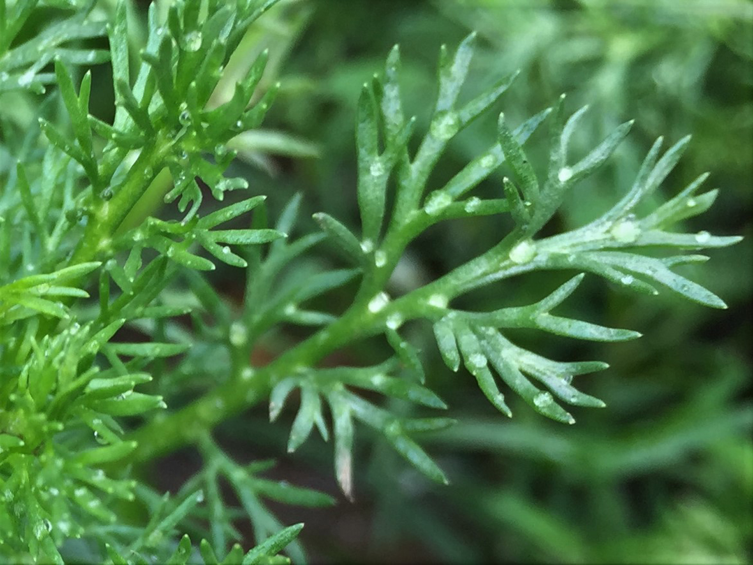 | Leaf | Stem leaves are alternate; stalk less, hairless, fern-like, 2-3 cm long and 0.6-1 cm wide. Leaf blades are inverted-lance shaped or oblong. They are deeply cut into lobes that are spaced out along the midrib but not cut to the midrib |