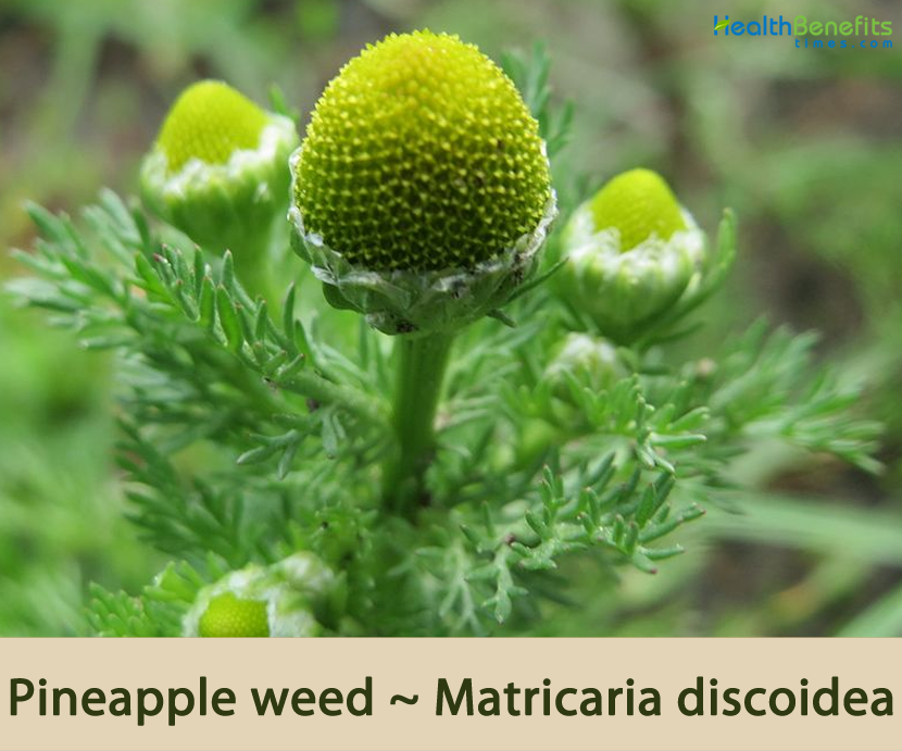 | Common Names | Pineapple Weed, Wild chamomile, Disc mayweed, False chamomile, Rayless chamomile, Rayless mayweed, Rounded chamomile, pineapple mayweed |