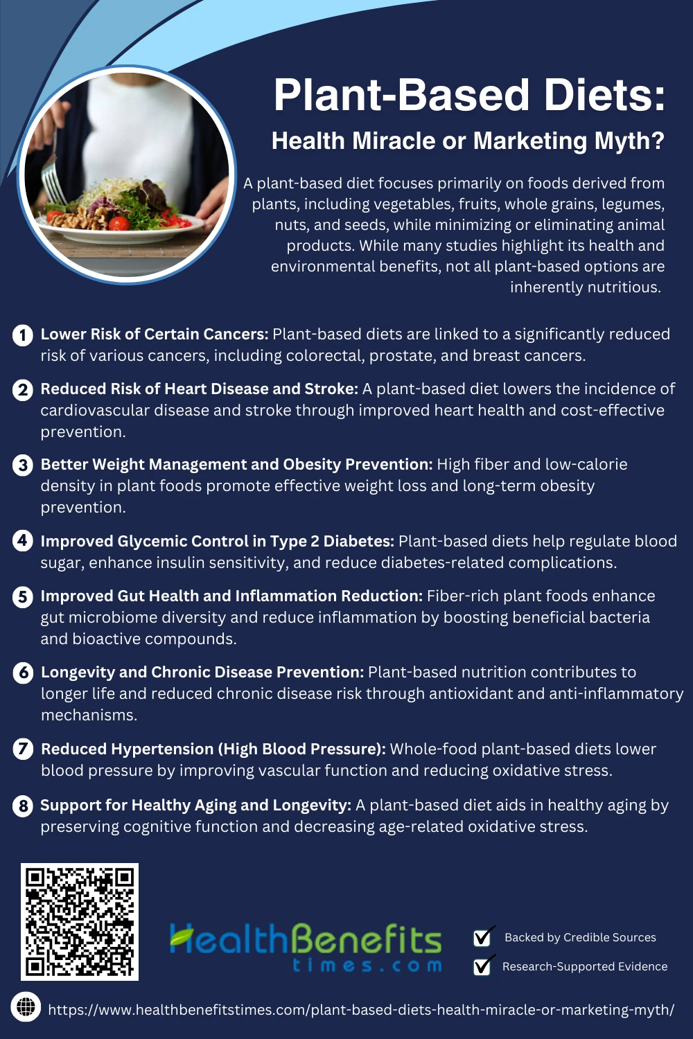 Plant-based diets have gained widespread attention for their potential health benefits, ethical appeal, and environmental sustainability. Scientific research supports many of these claims, particularly when the diet emphasizes whole, unprocessed foods. However, nutritional deficiencies, overreliance on processed substitutes, and marketing hype can blur the line between genuine health benefits and commercial trends. Ultimately, whether a plant-based diet is a health miracle or a marketing myth depends on individual choices, dietary quality, and nutritional planning. It’s not a one-size-fits-all solution, but for many, it offers a powerful step toward better health and conscious living—when approached with balance and informed decision-making.