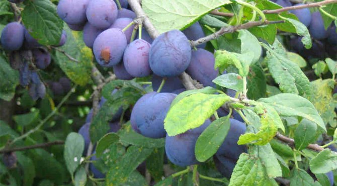 Ripe, plum fruit is sweet and juicy and it can be eaten fresh or made into jams, preserves, pastry, plum dumplings, and other foods.