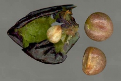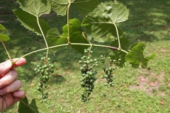 | Shapes | Clustered drupes, shiny, spherical, to 0.5 inch (1.2 cm) wide, green tipped with a persistent pistil |