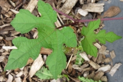 | Leaf | Alternate, simple and heart shaped in outline but variable in form from entire with 1 to 3 tips to those with multiple incised, rounded to scalloped lobes between 3 to 5 prominent whitish veins radiating from the base |