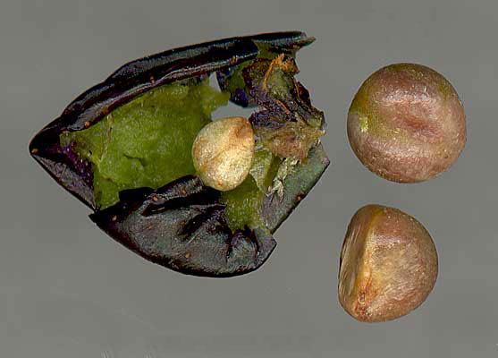 | Shapes | Clustered drupes, shiny, spherical, to 0.5 inch (1.2 cm) wide, green tipped with a persistent pistil |