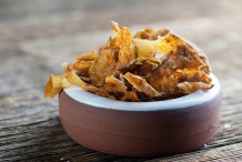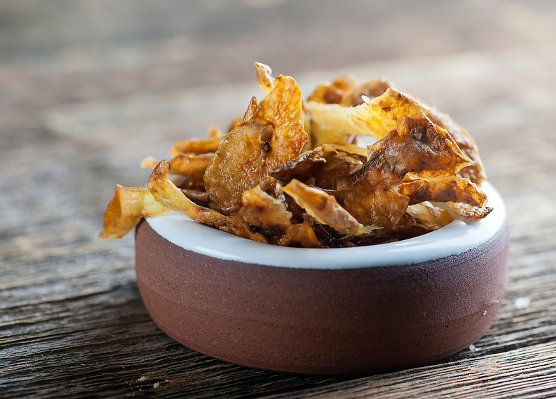 Since 1970s and early as 1974, potato skins are used as an appetizer in restaurants. Restaurants such as Prime Rib Restaurant, R.J. Grunts of Lettuce Entertain You Enterprise claims to be a part of pioneer list of first restaurants which serve potato skins.