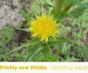 The genus Sonchus, is the old Greek name for ‘hollow’ and was applied due to the hollow stem of the Sow Thistle and the species asper, means ‘rough’ – as in the spiny edges. The author name for the plant classification is as follows: The first to classify was ‘(L.)’ which refers to Carl Linnaeus (1707-1778), Swedish botanist and the developer of the binomial nomenclature of modern taxonomy. His work was modified by ‘Hill’ which is for John Hill (c1716-1775), English botanist, author of 76 works including the 26 volume The Vegetable System. The origin of the name ‘Sow Thistle’ is ancient but obscure. Sonchus asper is a major problem in winter crops and in tillage systems throughout southern Australia, South-East Queensland and Northern New South Wales. Its edible leaves make a palatable and nutritious leaf vegetable.