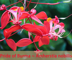 Common Names Queen of Flowering Trees, Pride of burma, Orchid Tree, Lady Amherst’s Pheasant, Noble Amherstia, Tree of heaven, Queen of flowers, Burma flower, Shokrey