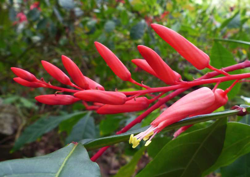 Quassia amara commonly known as Quassia, Bitter Quassia, Amargo, Bitter-ash, Bitter-wood, Jamaica Quassia, Bitter Bark, Quassia Bark and Quassia Wood is a small evergreen shrub or rarely a small tree native to Costa Rica, Nicaragua, Panama, Brazil, Peru, Venezuela, Suriname, Colombia, Argentina, French Guiana and Guyana. It is a member of the Simaroubaceae family. Linnaeus named it after the botanist who first described it, the former slave from Surinam, Kwasimukamba, also known as Graman Quacy. He was a healer who supposedly discovered the medicinal properties of its wood and used it as a secret remedy for the cure of malignant fevers endemic to Surinam.