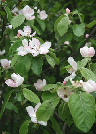 Flowers are 4–5 cm across on tomentose pedicel with caducous, ovate bracts with campanulate hypanthium which is densely tomentose abaxially; sepals 5, ovate or broadly lanceolate, 5–6 mm, longer than hypanthium, both surfaces tomentose, margin glandular serrate, apex acute; petals 5, white or pinkish, 1.8 cm long; stamens less than 1/2 as long as petals. Styles are nearly as long as stamens, densely villous basally.