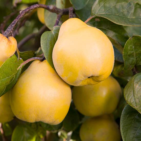 Quince scientifically known as Cydonia oblonga is actually the sole member of the genus Cydonia in the family Rosaceae which also contains apples and pears, among other fruits. It is a perennial shrub or small tree and is native to western Asia.  Quinces are very adaptable, low maintenance and cold hardy trees and rarely require fertilizer. These trees prefer heavy, wet soils. Regular deep watering during the hot summer months is helpful to fruit production. Since quince is in the rose family they are susceptible to some diseases. However, good care of your tree can help prevent problems. Apple-shaped Quince, Common Quince, Quince, Quince Seeds, Quince Tree are few of the common names of Quince. They are excellent for jams, jellies, preserves and wine. They ripen in fall and are still hard, but bruise easily. The fruit will keep a few weeks when refrigerated. Orange, Champion, Pineapple, Angers, Smyrna, Van Deman, Rea and Meech are few of the popular varieties of Quince.