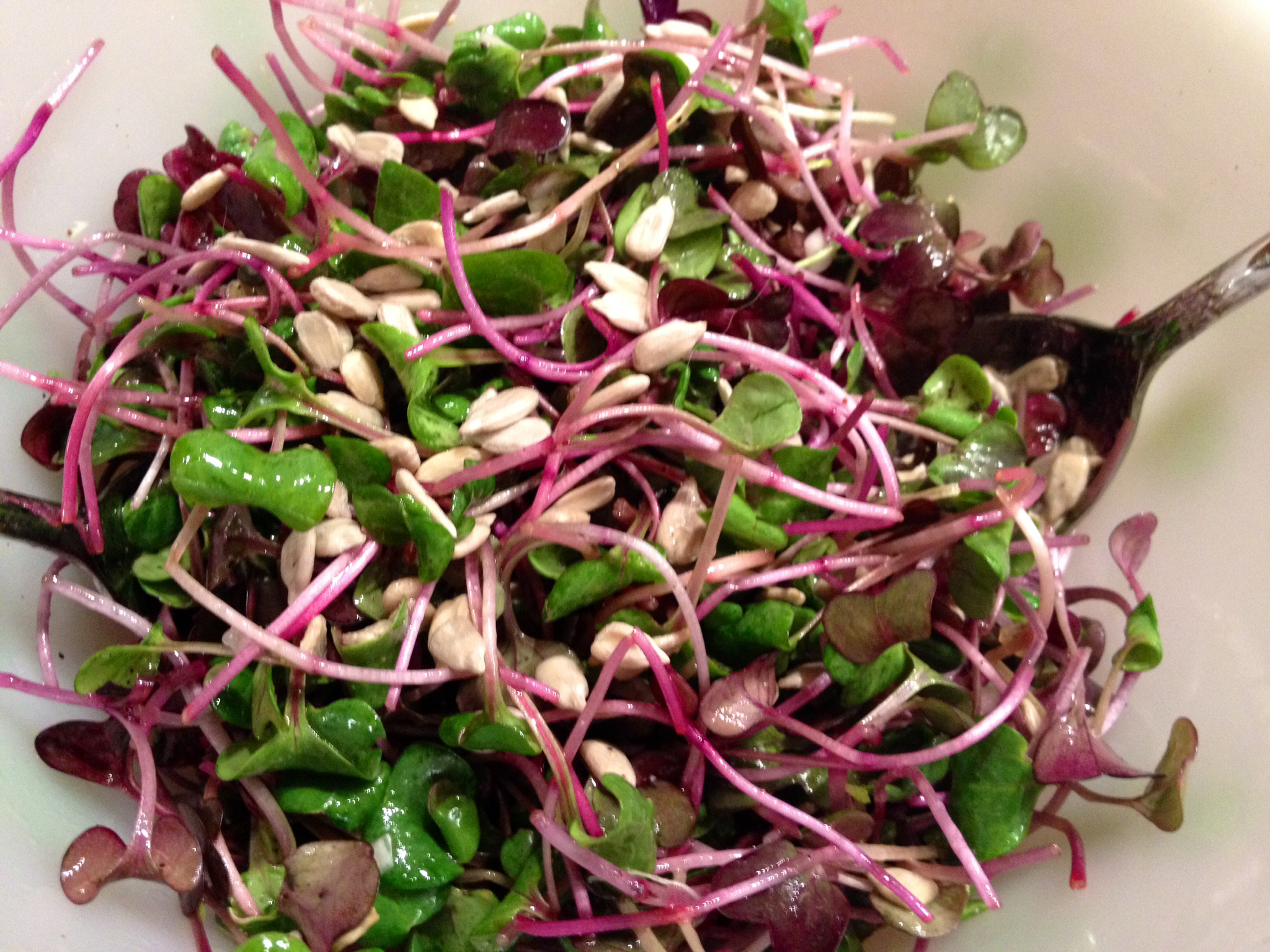 Toss the dressing with the buckwheat groat sprouts and serve.