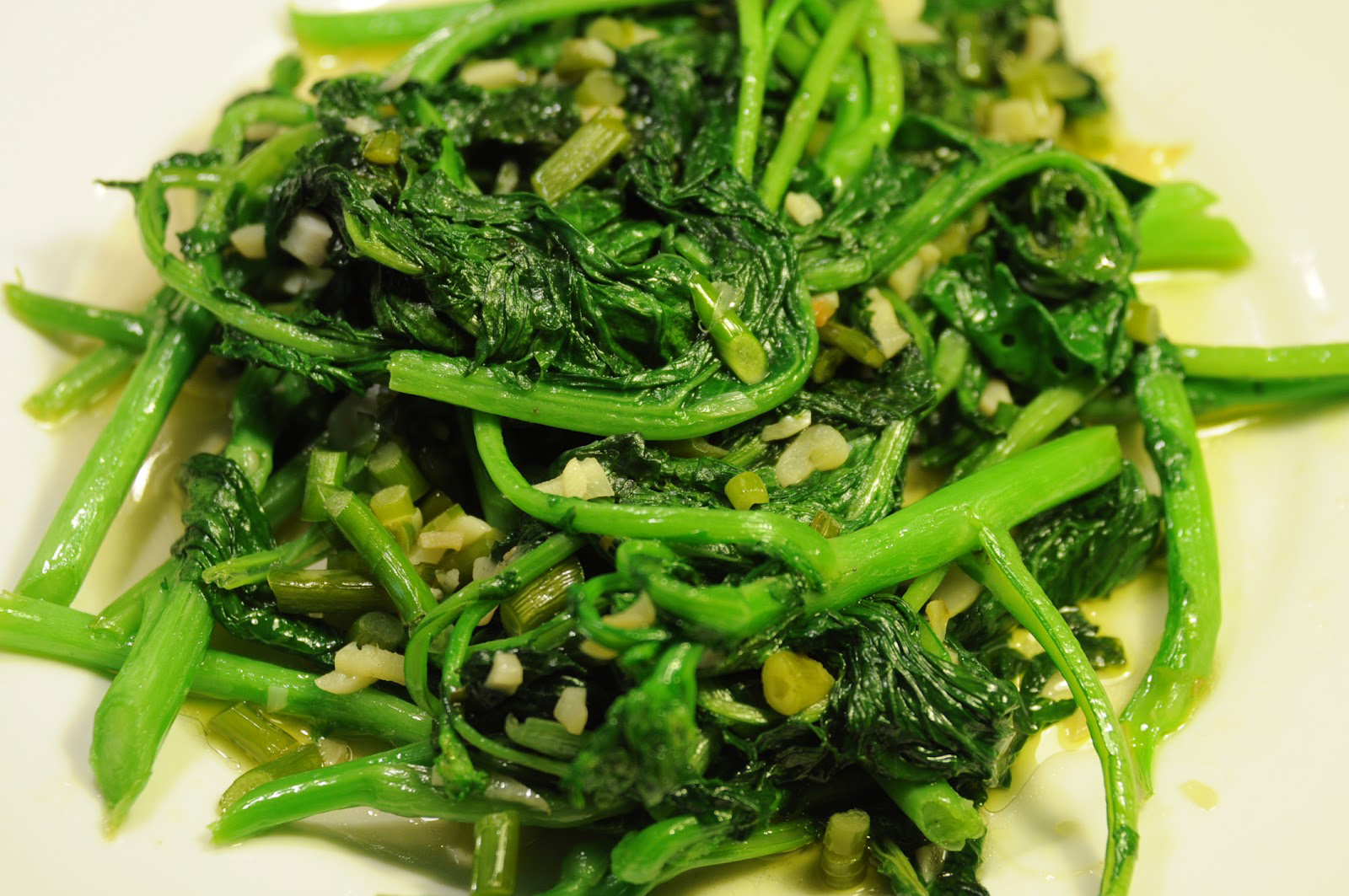 Boil Rapini in saltwater and sauté it in olive oil with chili pepper and garlic.