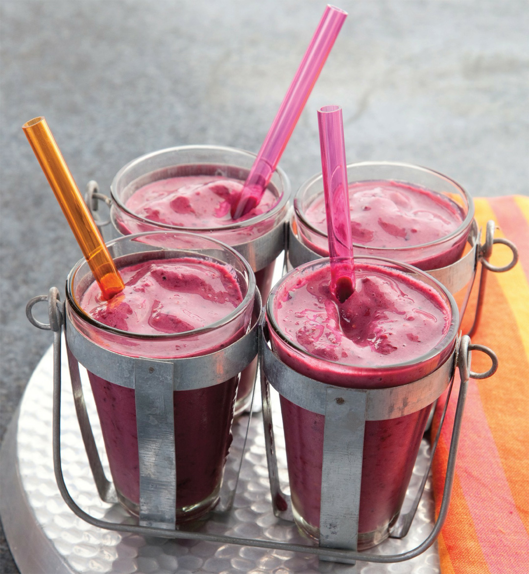 - In a blender, combine all the ingredients and purée until smooth.