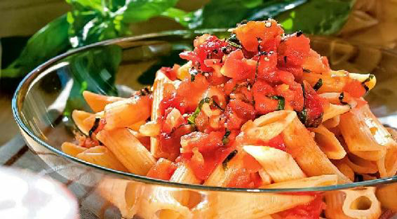 “Arrabbiata” Italian “wicked, angry”. And peperoncino-pepper, which is added to this sauce, the Italians call “ciavolino”. Its pungent taste goes well with the juiciness of the tomato and garlic flavor.