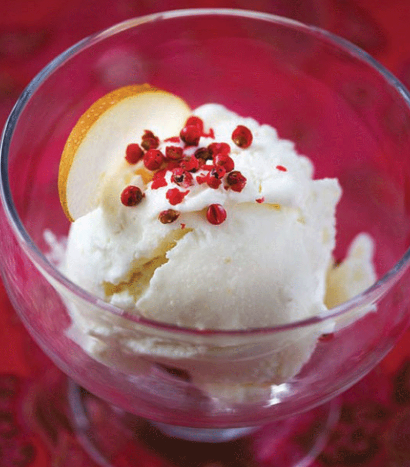 - Top the frozen yogurt with the crushed pink peppercorns.