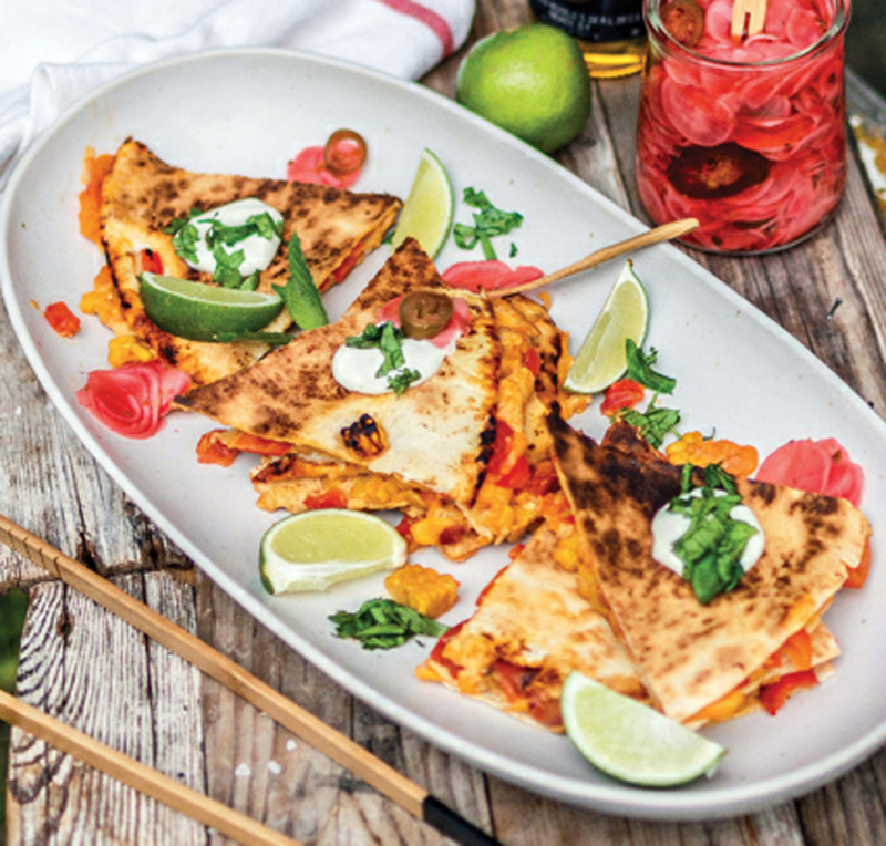 - Grill the quesadillas over indirect heat for 12–14 minutes, carefully turning them over halfway through.