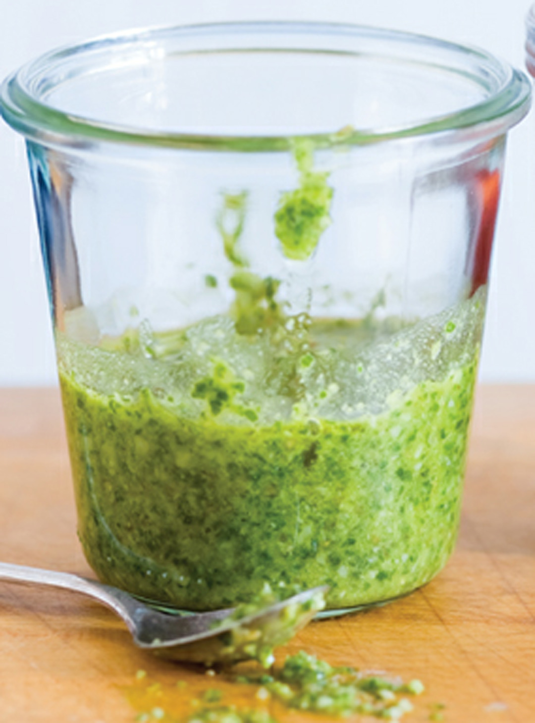 Pesto is a sprightly sauce to use on pizza and focaccia, and with many other dishes as well. This is Peter’s favorite version, but feel free to play with the recipe. To get you started, we’ve included several variations. Just one caveat: Don’t use packaged grated cheese. For optimum flavor and best results, the cheese should be freshly grated.