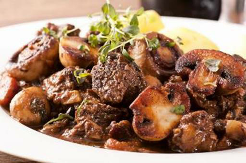 - Marinate beef in wine, oil, thyme and pepper for few hours at room temperature or 6-8 hours in the fridge.