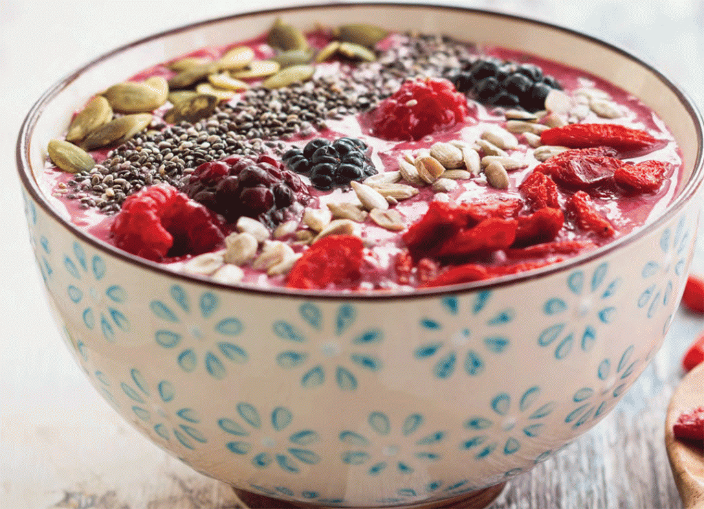 - Pour the mixture into glasses or bowls and serve with toppings of your choice such as dried fruit, fresh fruit, nuts and seeds.