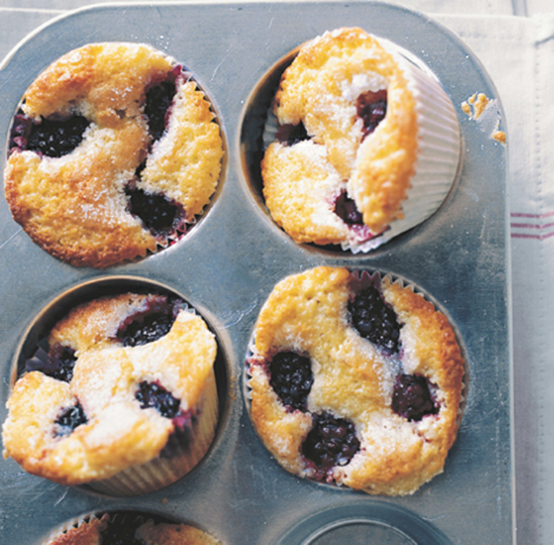 Succulent blackberries, picked fresh from a farm or bought at a local market, are baked into golden cornmeal cupcakes for a delicious taste of summer. Serve the cakes warm from the oven or at room temperature, and pair with ice cream, if desired. Oven temperature is crucial here: If it’s any cooler than 375 degrees, the berries will sink to the bottom.