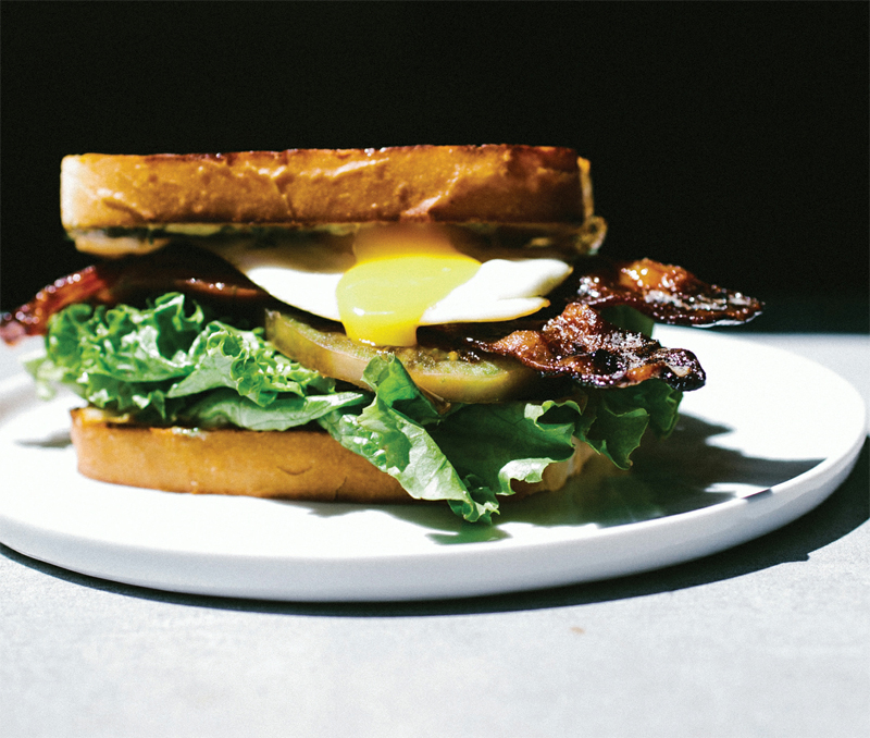 - Toast the bread slices, then generously slather with the mayonnaise. Layer on the lettuce, tomato, bacon, and egg. If you’re feeling particularly fancy, avocado is nice here, too.