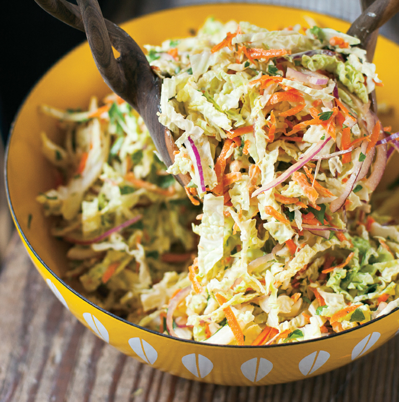 - In a large bowl, combine the cabbage, onion, carrots and most of the parsley.