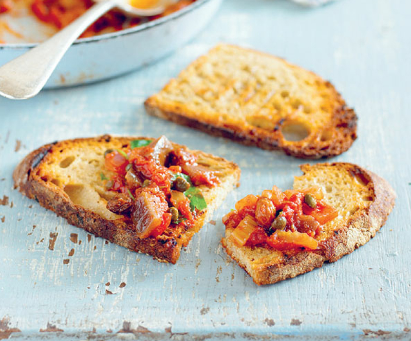 In Italy, caponata is eaten warm as a side dish or cold as part of an antipasto selection. It is also delicious served at room temperature on tasted ciabatta slices.