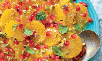 Slices of fresh orange are made more exotic and flavorsome with rose water, pomegranate seeds,…