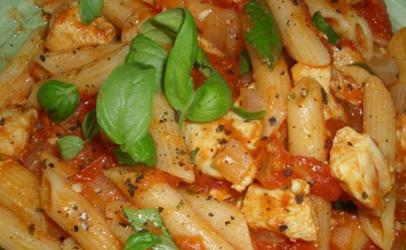 - Put the water on to boil while cooking the garlic/onions/chicken, so the pasta is finished about the same time as the rest