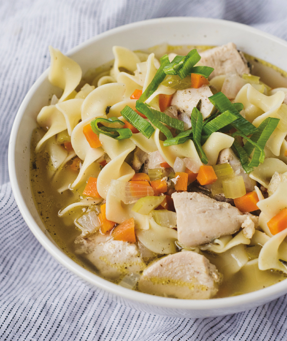 This is it: the ultimate feel-better soup. Whenever I or my husband is home sick I like to make a batch of slow cooker chicken noodle soup to lift our spirits in the morning. It’s amazing how one little dish can go such a long way, and if you are the one under the weather, it is an easy one to make even if you have to do so with a blanket over your shoulders.