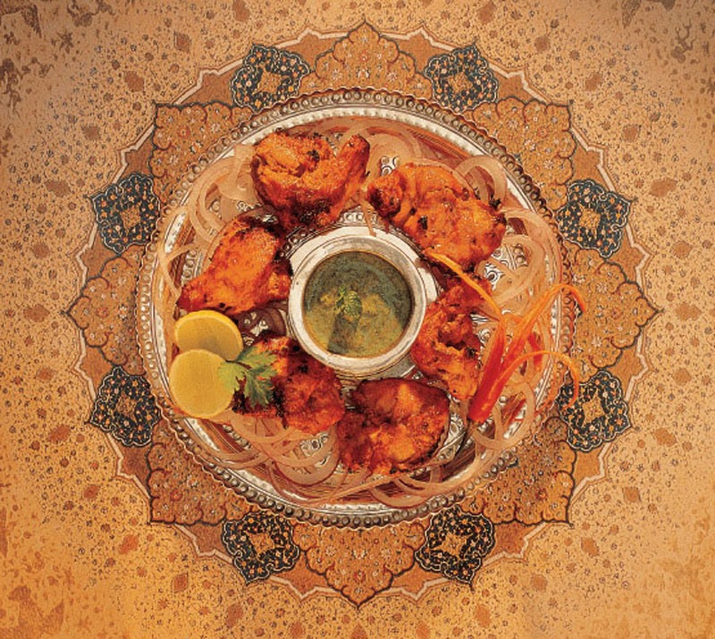 - Thread the chicken onto skewers and brush with additional oil. Place under a very hot grill or broiler for 6-8 minutes, turning once, until cooked and golden brown. Serve with Mint Coriander Chutney, onion rings, lemon wedges and Indian bread such as Tandoori Naan.