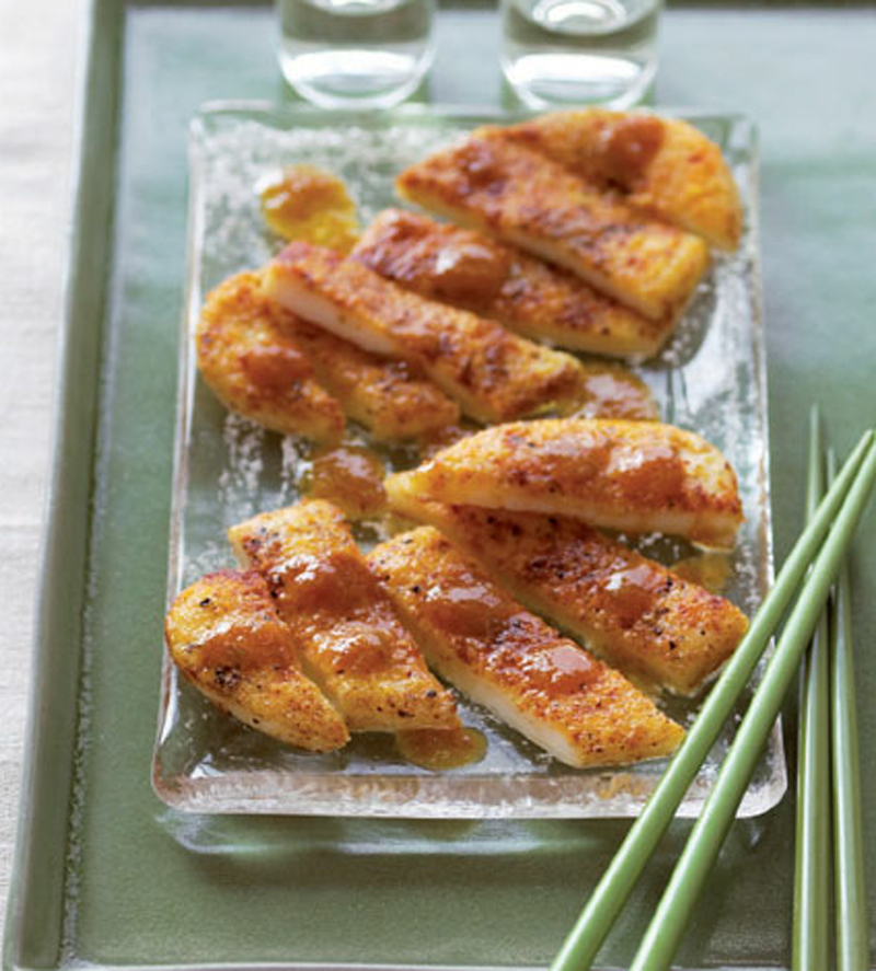 Squid is cheap, full of great protein, and, when prepared properly, delectable. Try this version, which receives a crispy crust from the ground pink lentils and a smoky goodness from the chipotle powder. If you can’t find chipotle powder, use any kind of chile powder, provided it’s fresh. Try it with a small chilled flask of dry, grassy sake like a daiginjo.
